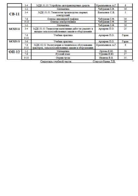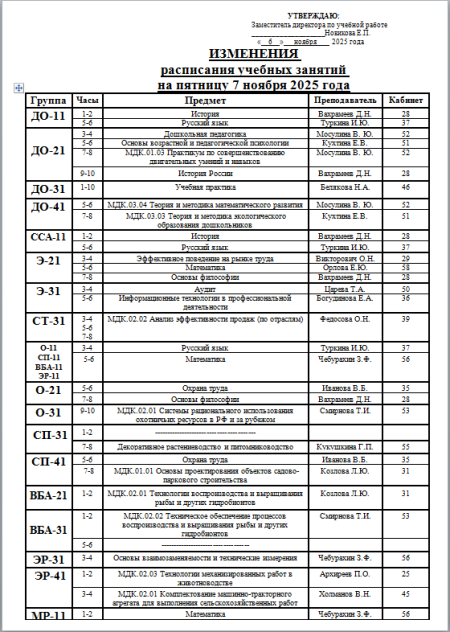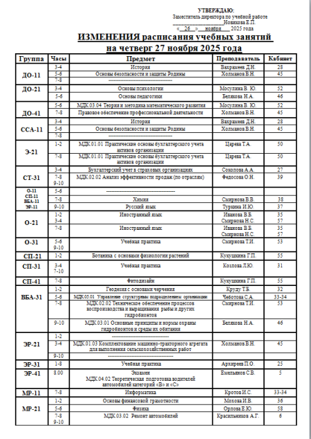 Расписание занятий на 1 семестр 2025-2026 учебный год